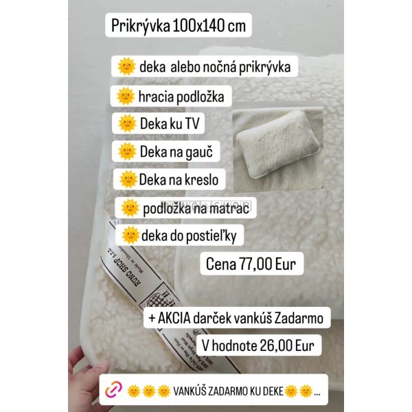 Detská prikrývka OVCIA VLNA MERINO 100 x140 cm Darček zadarmo