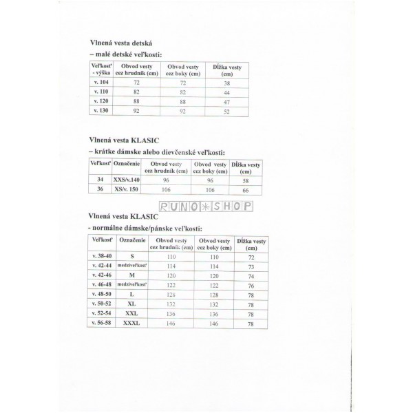 • VYBERTE SI PROSÍM VEĽKOSŤ PODĽA NAŠEJ TABUĽKY