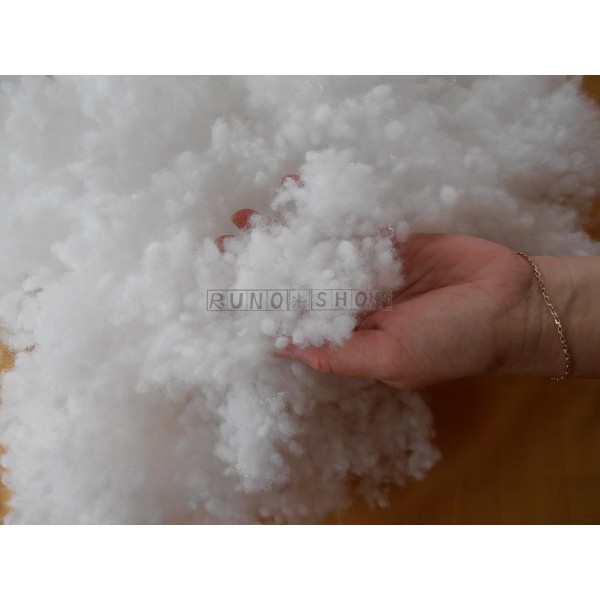 Výplň: 100% PES = POLYESTER -polyesterová antialergická mäkká výplň v tvare vločiek (guličiek)