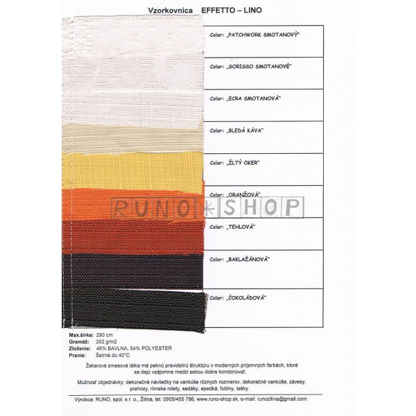 DOPORUČUJEME skombinovať : Effetto LINO: Zlty OKER+ Naturale+ Biela Kava +Oranzovy